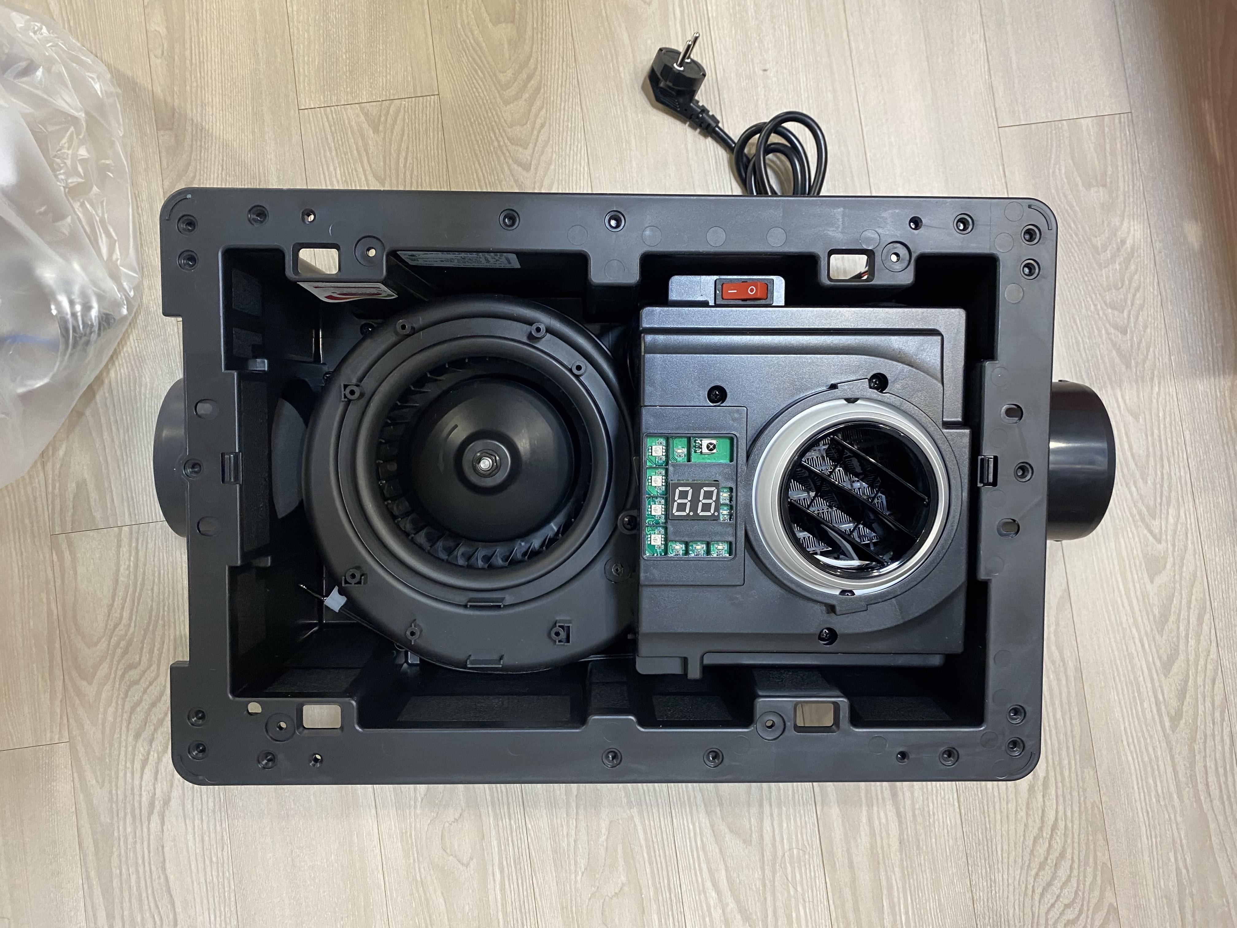보통은 흡기와 배기가 1:1로 가지만, 해당 아파트 구조상 안방 화장실 옆 드레스룸 디퓨져가 화장실 환풍기를 통해 배기가 되는 구조였기에 흡기추가형 모델을 주문한 것 입니다.