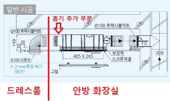 거실화장실과 달리 안방화장실에는 2way 흡기추가형 모델이 시공됐습니다.