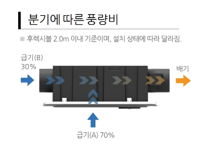 분기에 따른 풍량비는 후렉시블 2M 기준으로 7:3 정도라고 합니다.
