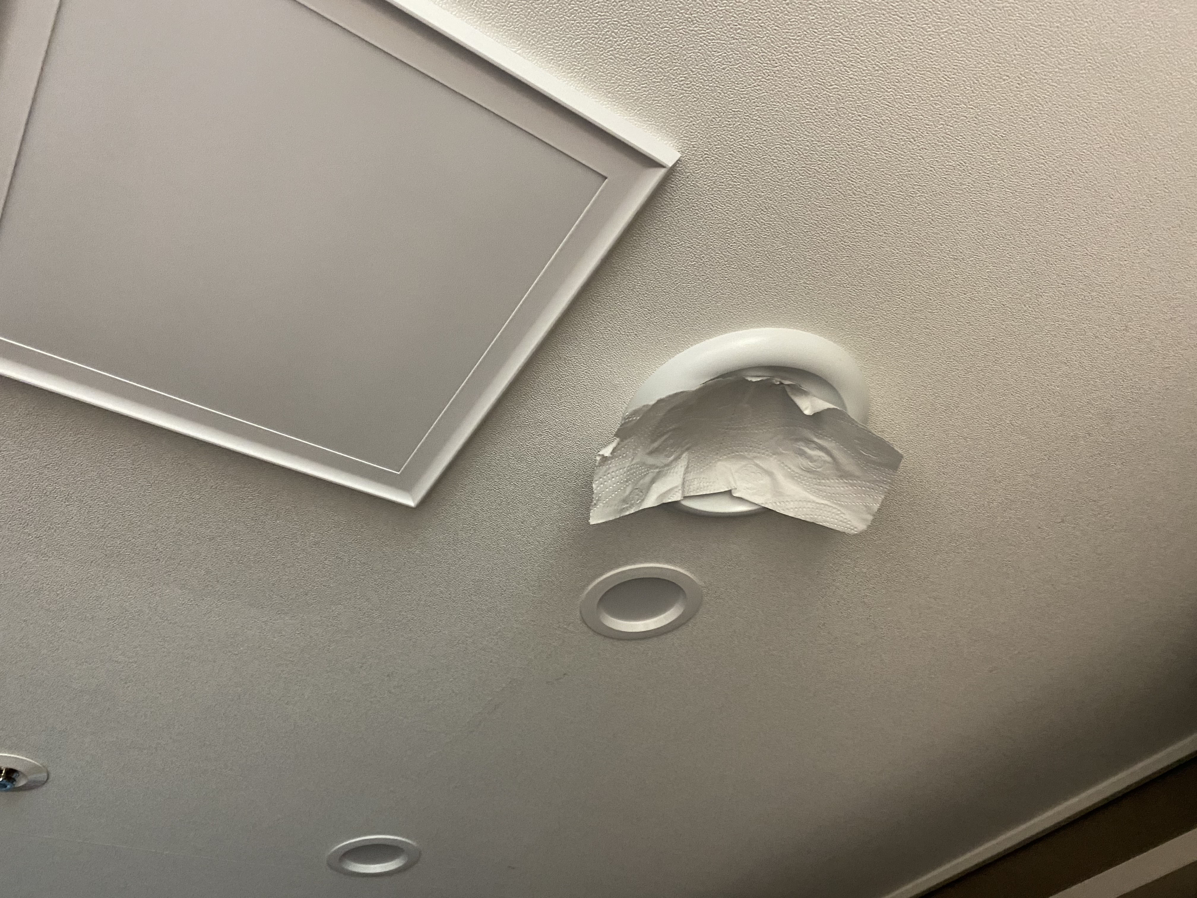 욕실 천장 소재가 ABS다 보니 SMC 재질보다는 덜딱딱해서 휴젠뜨를 시공했을 시 밑으로 쳐질 염려가 있어