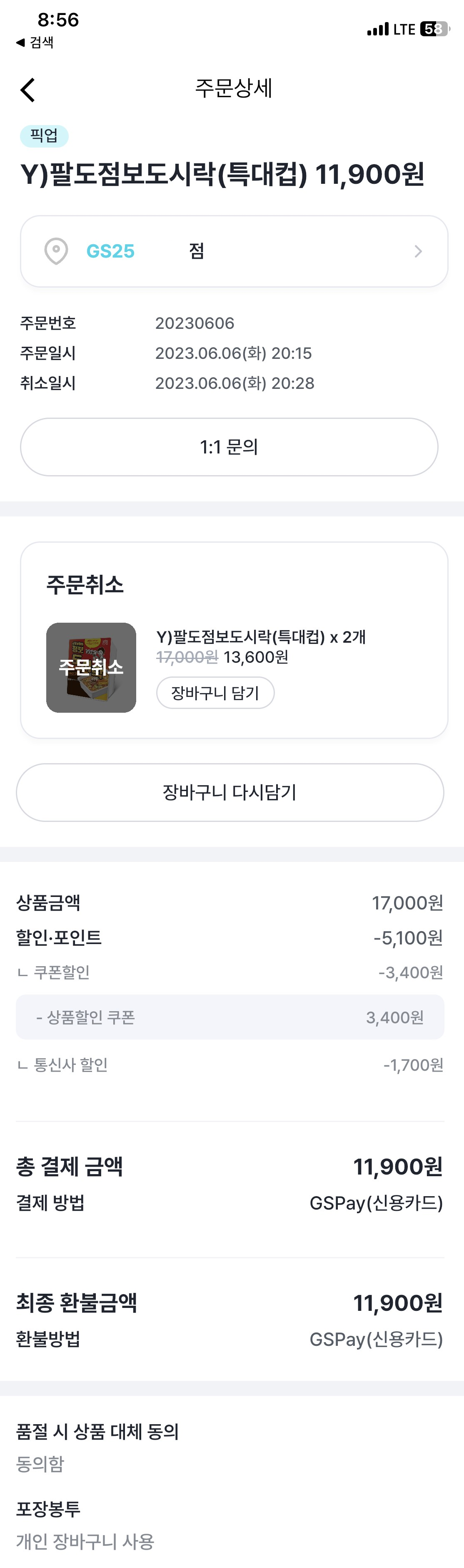 "우리동네GS 앱"으로 주변 편의점 재고 파악해서 예약하고 픽업하면 금액도 훨씬 저렴(20% 할인)하고 간편하죠?